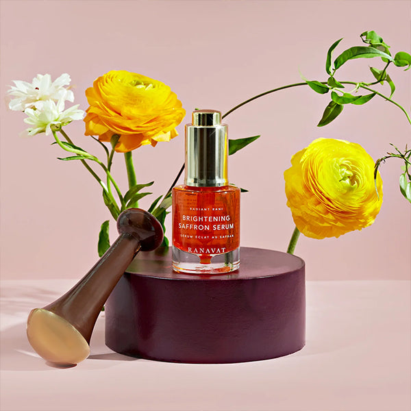 Masseer 's morgens en' s avonds zachtjes een paar druppels van het Brightening Saffron Serum op een vochtige huid, nek en decolleté. Je kunt het serum op saffraanbasis ook als primer gebruiken of het met je foundation mengen voor een prachtige dewy finish.