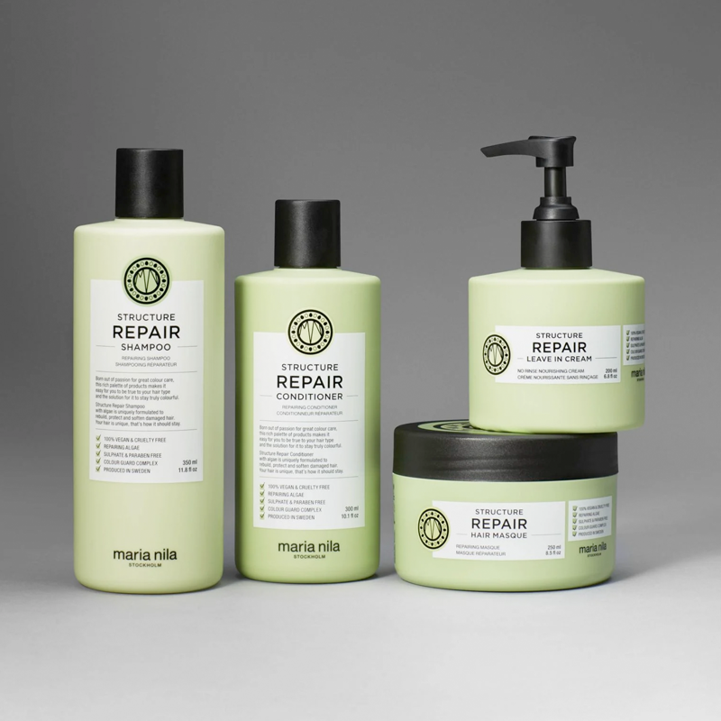 Maria Nila Structure Repair Shampoo is een voedende shampoo speciaal voor beschadigd, droog en chemisch behandeld haar. Deze 100% natuurlijke shampoo hydrateert en versterkt je haar. Algenextract helpt het haar te revitaliseren en maakt het haar weer zacht en geeft glans.