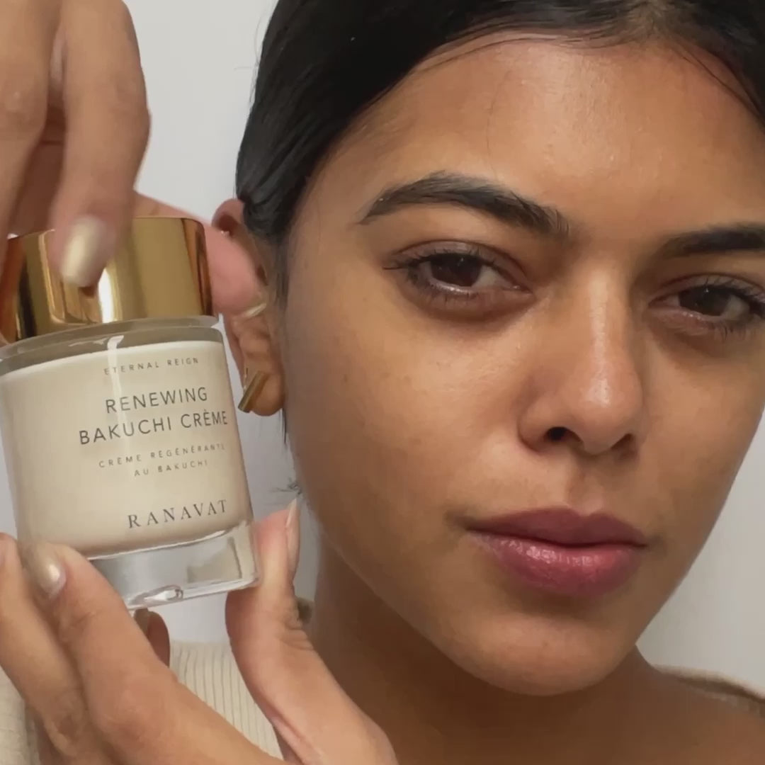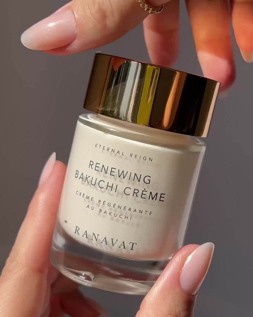 De heerlijke RANAVAT Eternal Reign Renewing Bakuchi Creme is gemaakt om te hydrateren, te herstellen en te vernieuwen. Deze luxe crème zit boordevol krachtige, jeugdige plantaardige ingrediënten zoals bakuchizaad en lotusbloem en geeft een zijdezachte finish die je huid er royaal uitgerust laat uitzien.